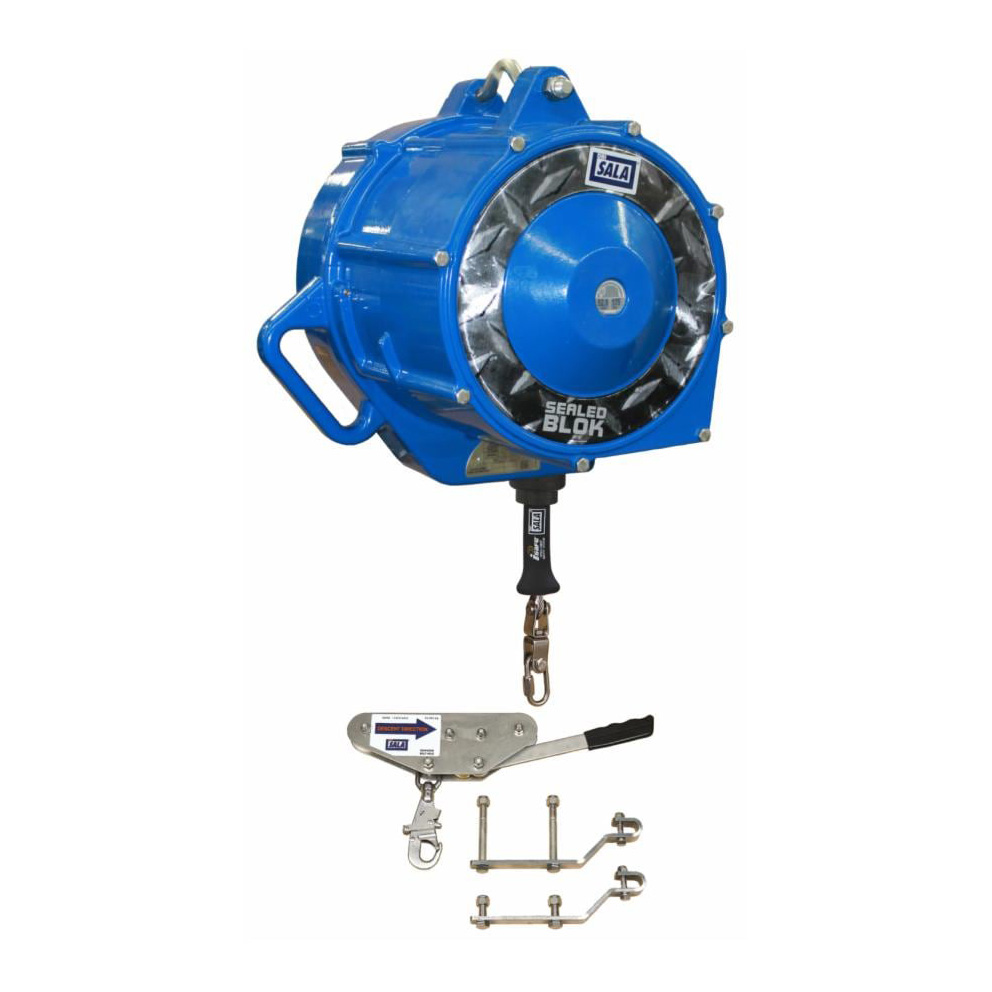200英尺(61米)高速自动下降设备,用于倾斜应用,镀锌救生索,自动收回,吊杆,制动车。